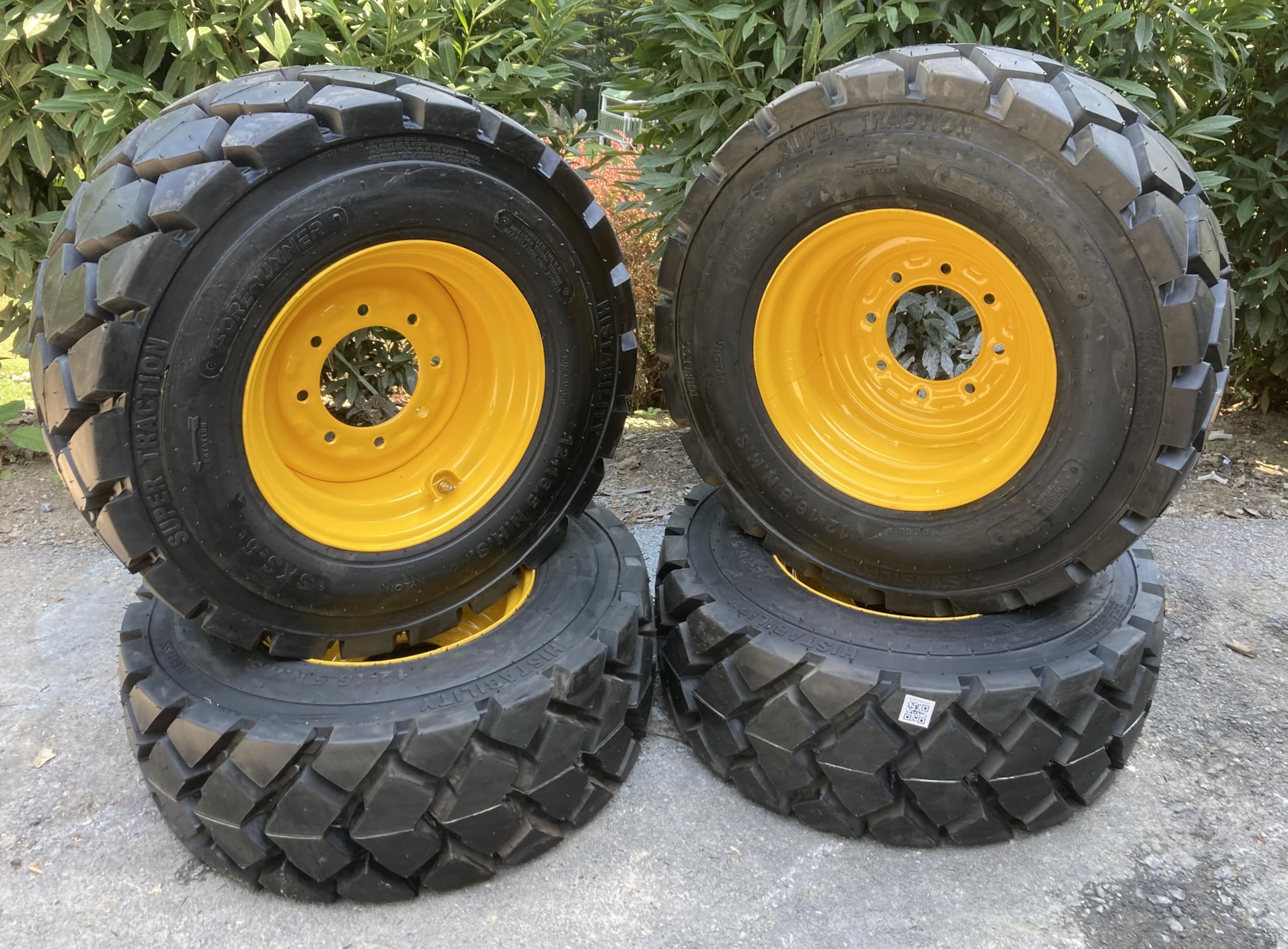 - (Singles or Set of 4) NEW Heavy Duty 12-16.5 Forerunner SKS-6 L5 Skid Steer Tires mounted on 8 lug Wheels for New Holland, John Deere & more- 12X16.5 - 14 PLY. Ready to put on your machine & go!