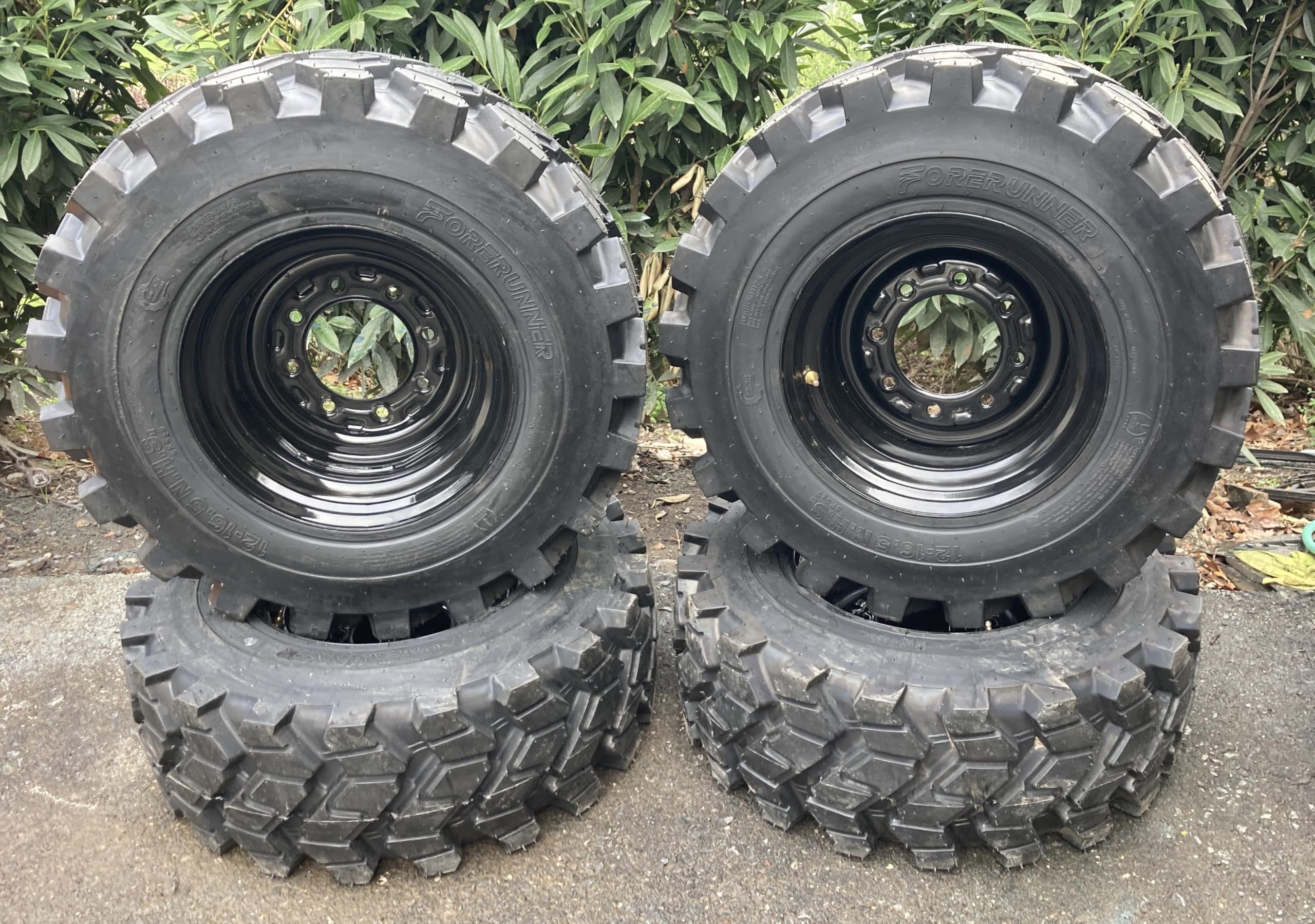- (Singles or Set of 4) NEW Heavy Duty 12-16.5 Forerunner SKS-9 Skid Steer Tires mounted on 8 lug Black Wheels for Bobcat & more - 12X16.5 - 14 PLY. Ready to put on your machine & go! Good Snow Traction - Self-cleaning tread ejects dirt and stones for maximum grip. (Replacements for CAMSO SKS753)