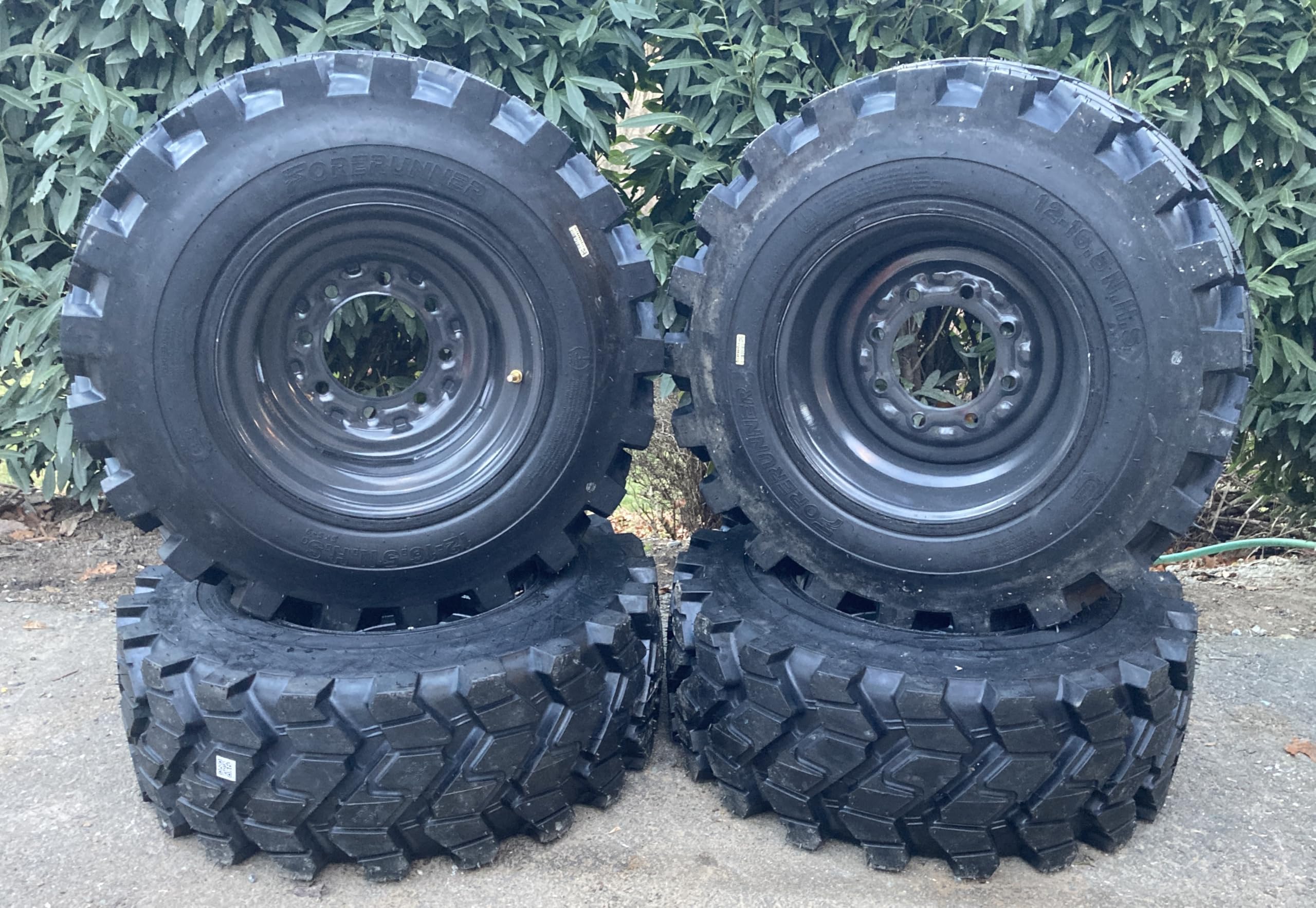 - (Singles or Set of 4) NEW Heavy Duty 12-16.5 Forerunner SKS-9 Skid Steer Tires mounted on 8 lug Gray Wheels for Case, New Holland & more - 12X16.5 - 14 PLY. Ready to put on your machine & go! Good Snow Traction - Self-cleaning tread ejects dirt and stones for maximum grip. (Replacements for CAMSO SKS753)